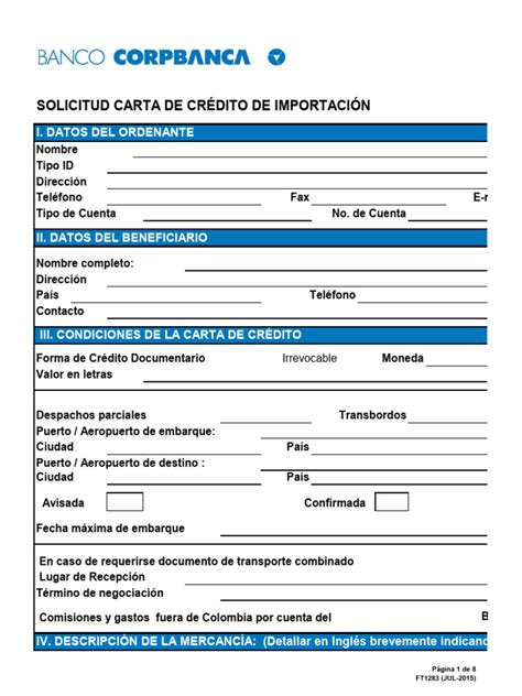 Formato De Carta De Credito Para Exportacion Pdf  Compartir Carta