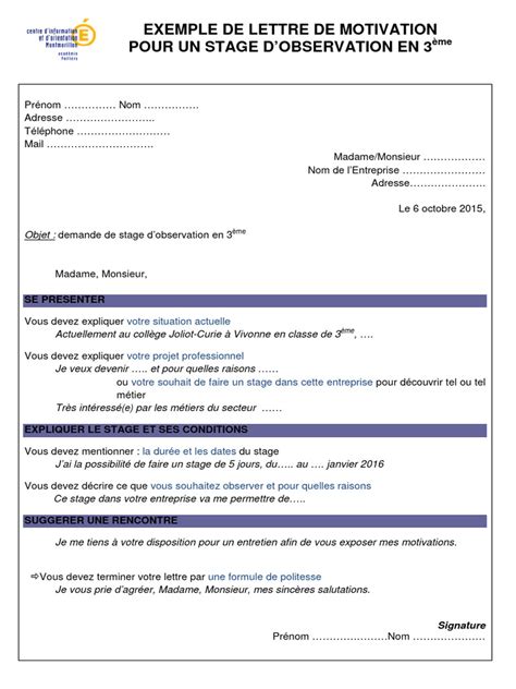 Let tre De Motivation Stage D Observation